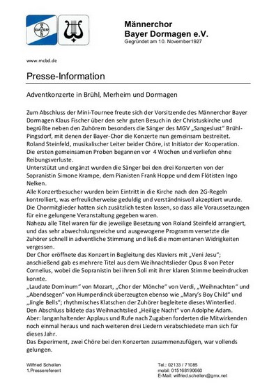 2021 - Männerchor Bayer Dormagen e.V.